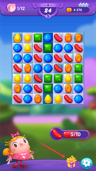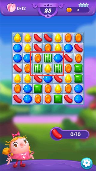 2、在糖果网格中,将红色框内的【特殊条纹糖果】进行消除将会获得礼物。
