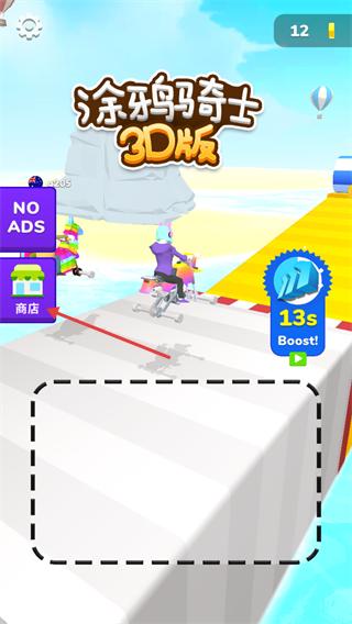 1、在关卡准备界面,可使用【13s-Boost!】功能提升行驶速度,也能查看【NO-ADS】与【商店】按钮。