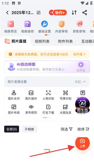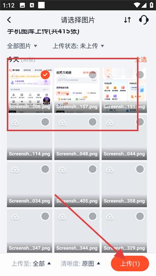 4、在图片选择页勾选目标照片,确认后点击【上传】,即可将照片上传至享像派相册。