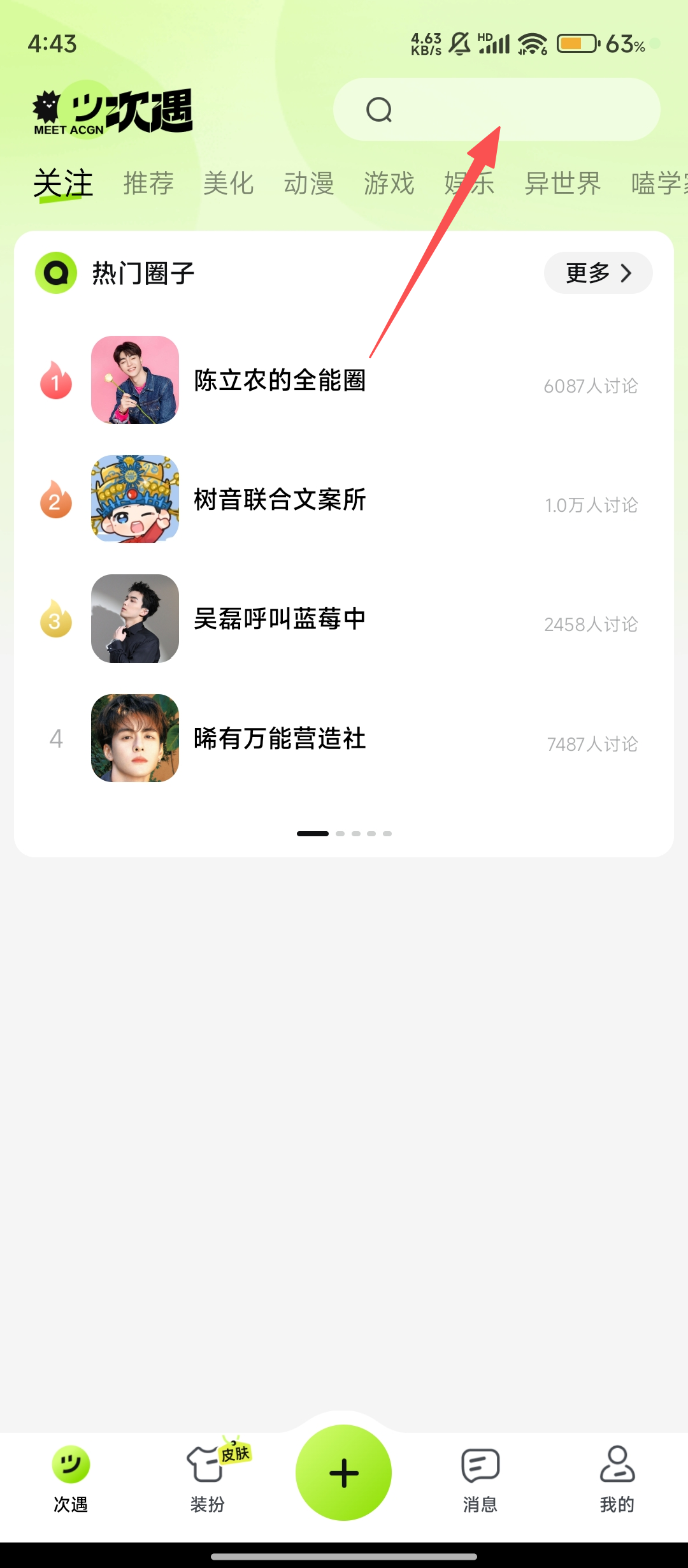 1、打开百度输入法,找到并点击搜索栏,这是寻找并关注用户的第一步哦。