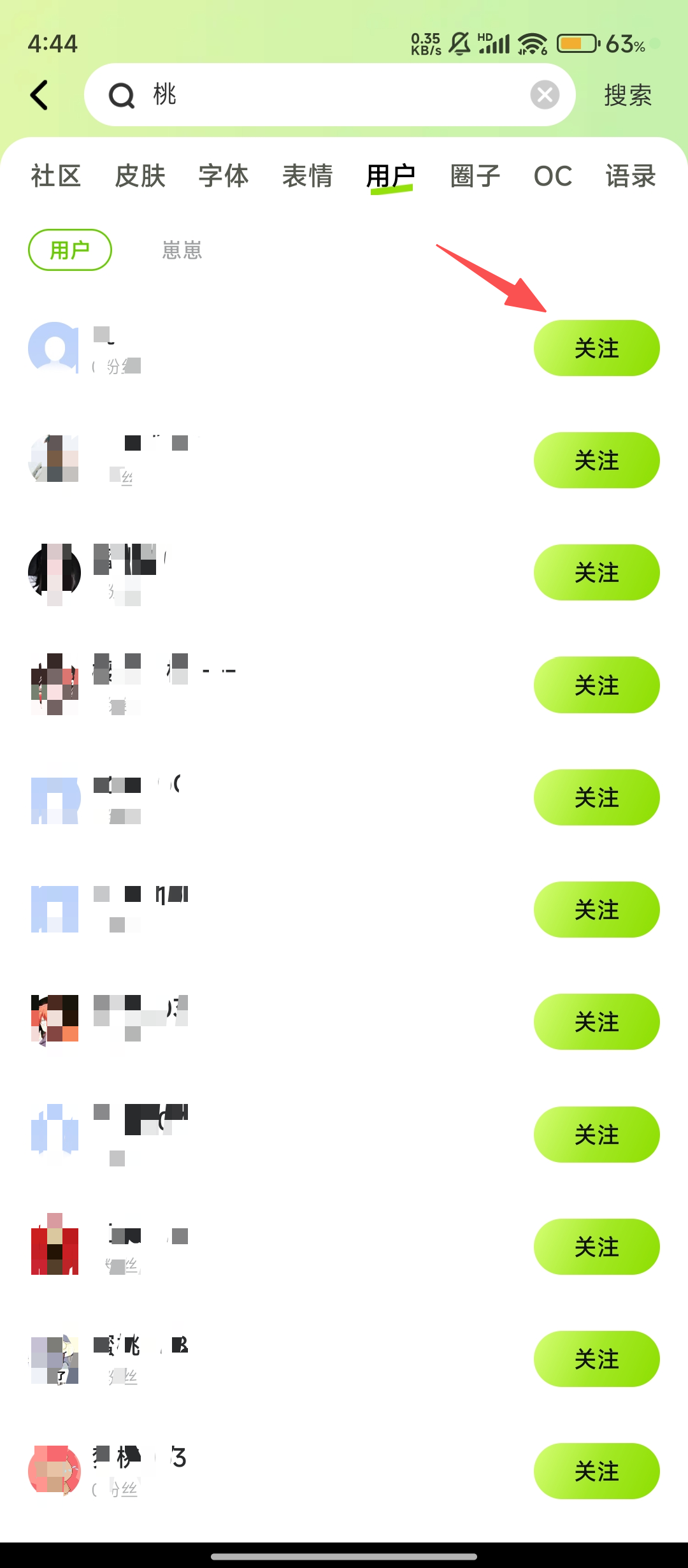 4、在用户列表中找到目标用户,点击【关注】按钮,就能成功关注该用户啦。