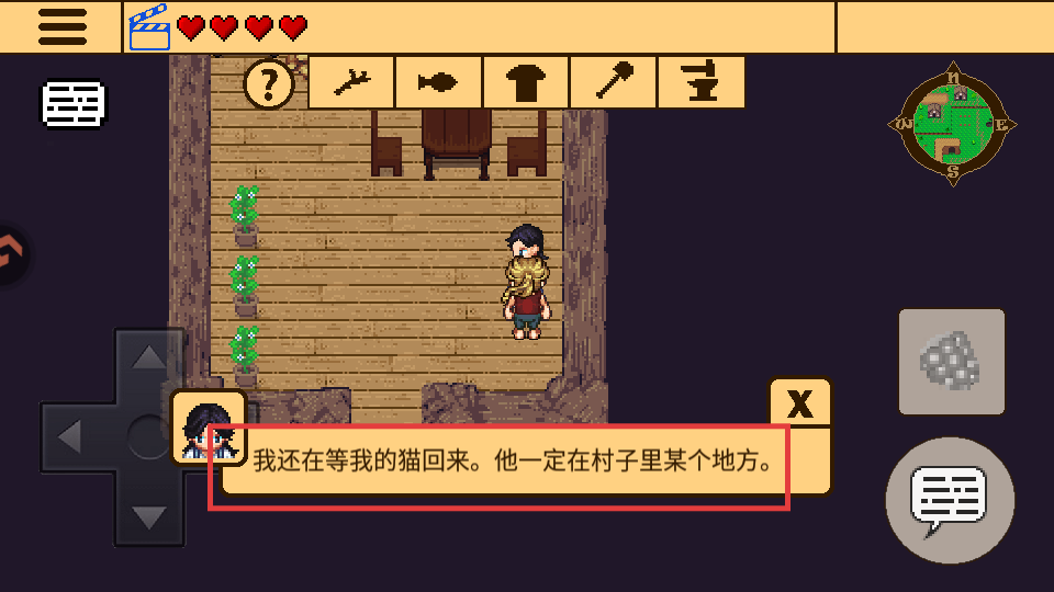 2、与NPC对话,获取任务线索,帮助角色找猫。