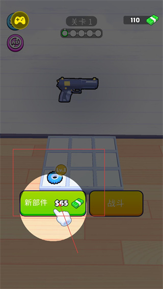 1、玩家进入游戏,可在关卡准备界面,消耗资源购买“新部件”,解锁枪械配件,为后续组装强化做准备。