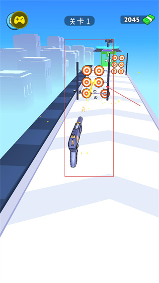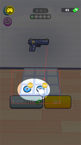 4、关卡中可通过射击靶群积累资源,后续可重复“购买部件-组装-战斗”的流程,持续强化枪械并挑战更高难度关卡。