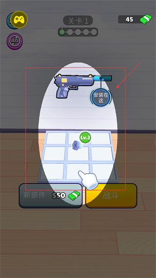 3、组装完成后,点击“战斗”进入关卡,利用强化后的枪械(含新增配件)射击目标靶,推进关卡进度。