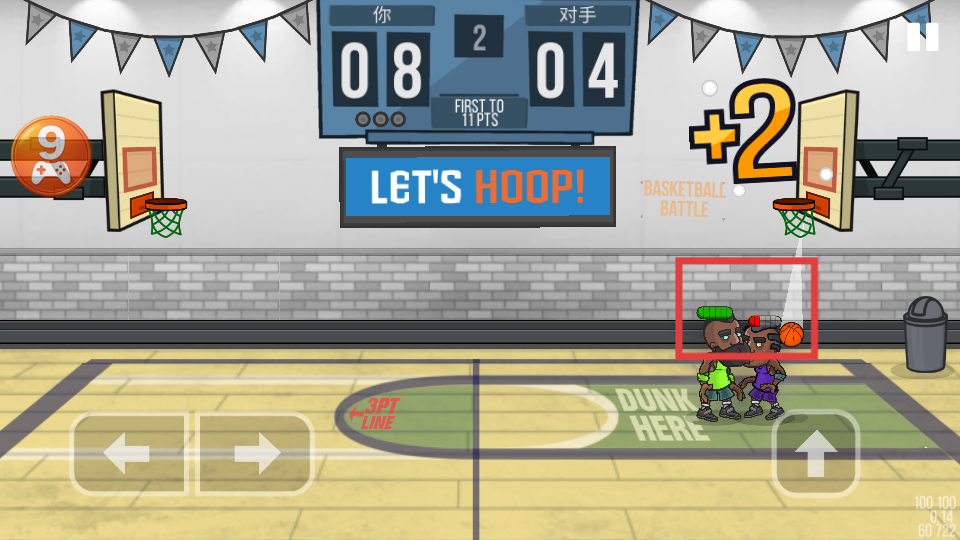 2、投篮得分,争取多进球,拉开比分,推进游戏进程,获得胜利优势。