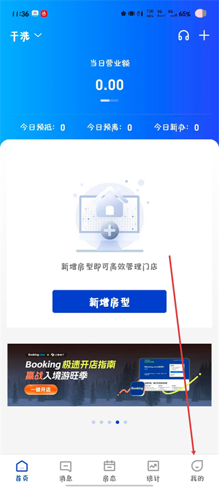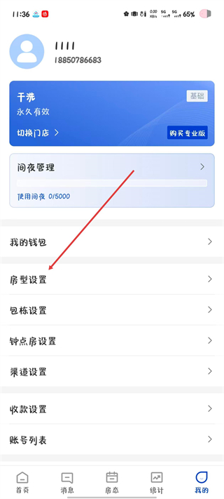 2、在个人中心页面找到房型设置选项,点击该选项进入房型房间设置界面。