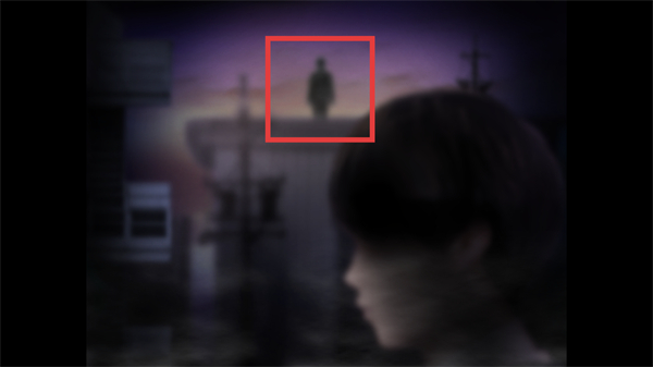 1、观察红框内的屋顶人物,留意该场景中的关键元素,推进对应的剧情探索流程。