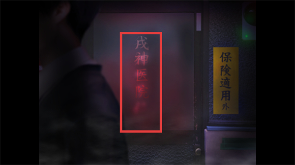 2、查看红框内的【戌神医院】标识,结合右侧【保険適用外】提示,探索该区域的解谜交互点。