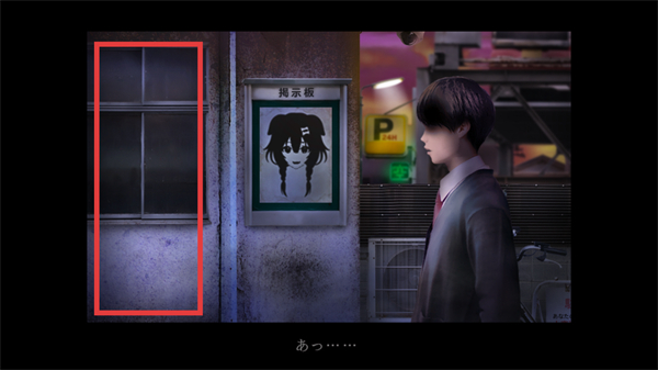3、关注红框内的窗户区域,结合【掲示板】内容,推进剧情解谜步骤。