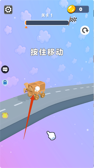 2、进入【关卡1】后,按住屏幕控制车辆移动,沿着道路前进,开始闯关之旅。