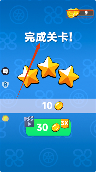 4、成功完成【关卡1】后,界面显示【完成关卡!】,获得金币奖励,可继续挑战后续关卡。