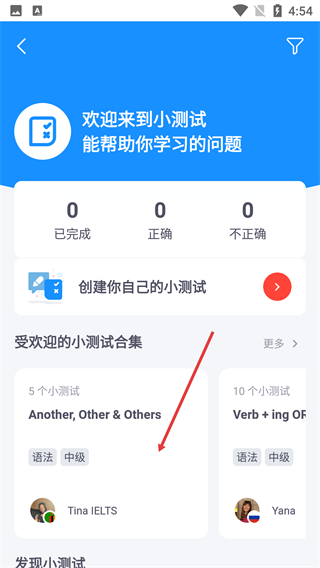 4、在小测试页面,选择目标测试集(如【Another,Other&Others】),点击即可开始对应的测试练习。