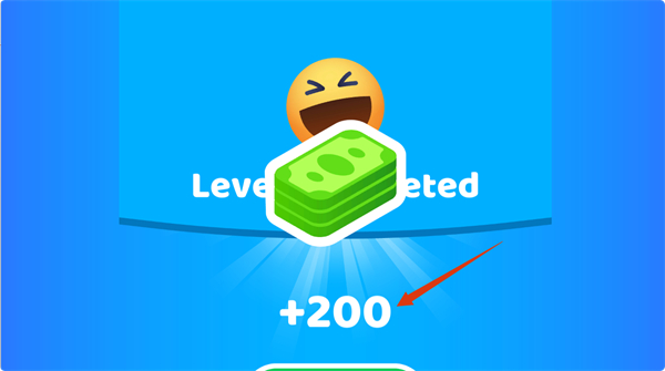 4、通关后领取【+200】奖励,积累资源以解锁更多道具与关卡,持续提升游戏进度与收益。