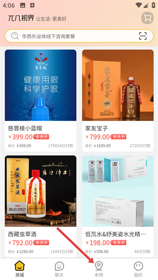 1、打开兀几视界App,点击【本地】进入本地服务板块,开启周边商家探索之旅呢。