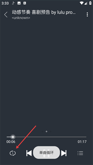 4、点击循环按钮后,播放模式切换为【单曲循环】,该歌曲就会重复播放。