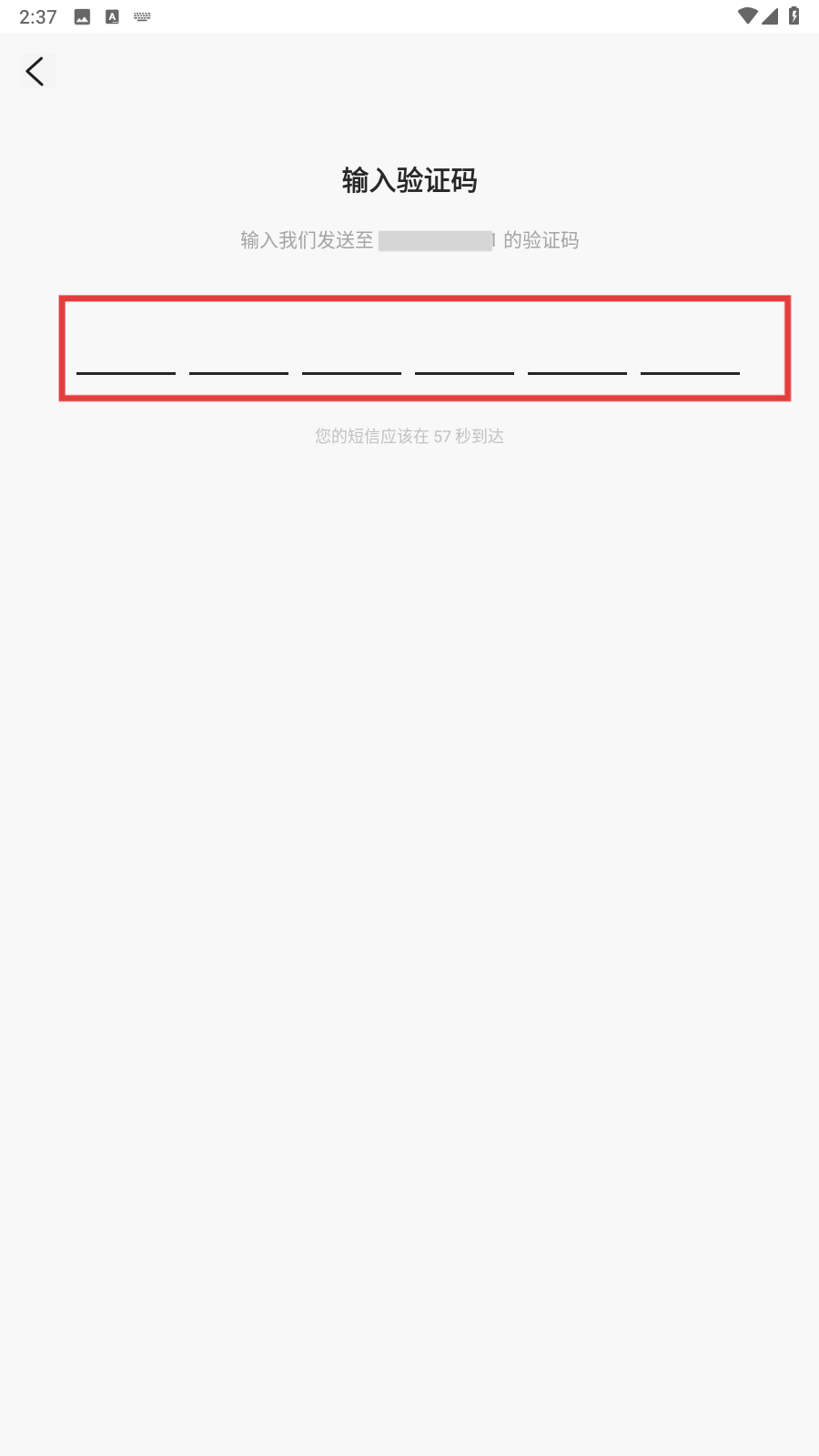 2、进入【输入验证码】页面后,我们查看手机短信,将接收到的验证码填入对应的输入框内,就能完成登录啦。