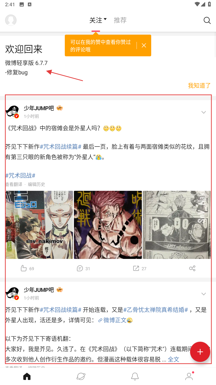 4、成功登录后,我们就会进入首页,可以看到【关注】和【推荐】的微博内容,尽情浏览感兴趣的信息啦。