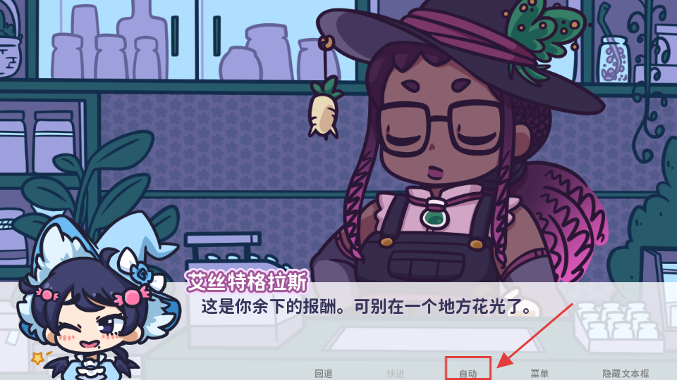 3、在【艾斯特格拉斯】给报酬的场景里用【自动】功能加速流程,专注剧情无需重复点击。