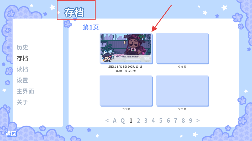 4、通过【存档】功能保存当前进度,界面有【第1页】存档格子方便后续读取继续体验。