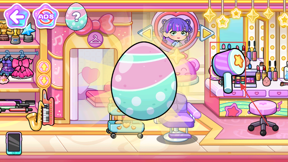 4、使用【星星】-【锤子】砸彩蛋,开启彩蛋获装扮、资源,装饰小镇或角色。