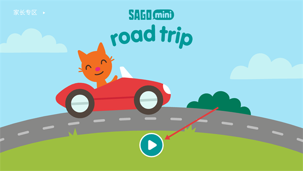 1、进入游戏主界面后,点击播放按钮,即可开启猫咪的公路旅行冒险关卡。