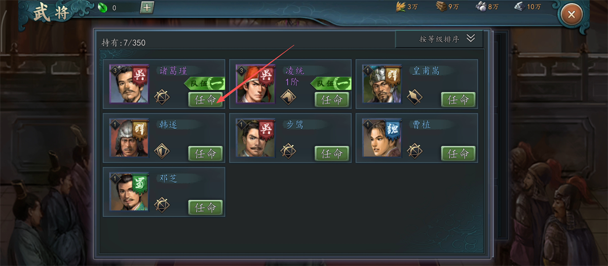 3、选择诸葛瑾等合适武将,点击【任命】,让其担任对应职位,助力阵营发展呢。