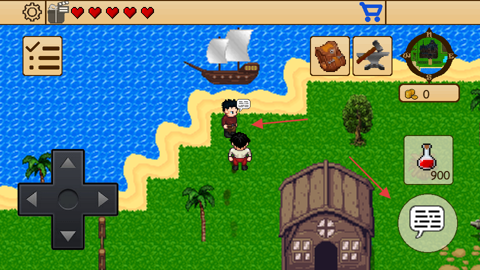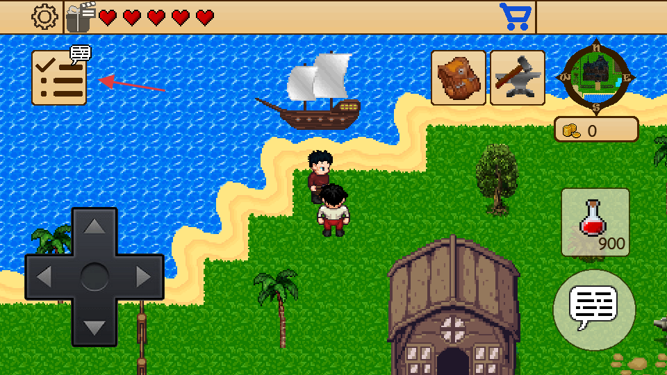 2、移动至海边场景,找到带有对话气泡的NPC,点击右侧对话按钮,与NPC交流来获取任务。