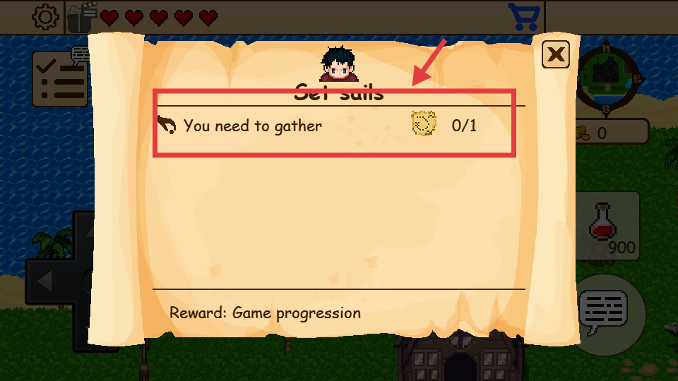 4、查看任务界面,按照“需要收集1个指定物品”的要求,去收集对应物品以推进游戏进度。