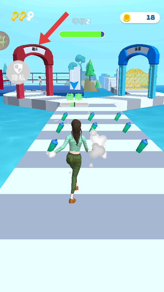 2、在跑道前行遇到分岔口时,选择箭头所指带有【战斗】标识的拱门路径,进入战斗环节。