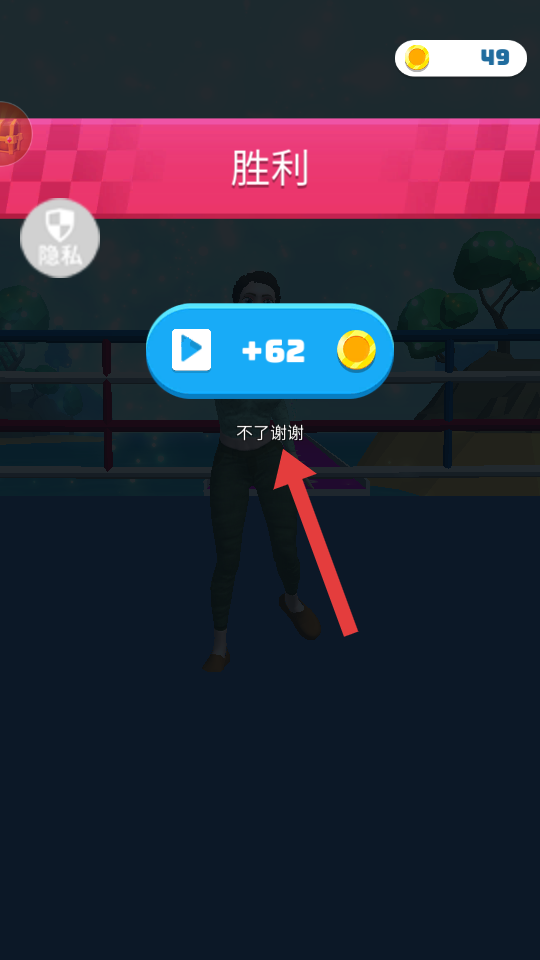 4、击败对手出现【胜利】提示后,点击【不了谢谢】,继续游戏。