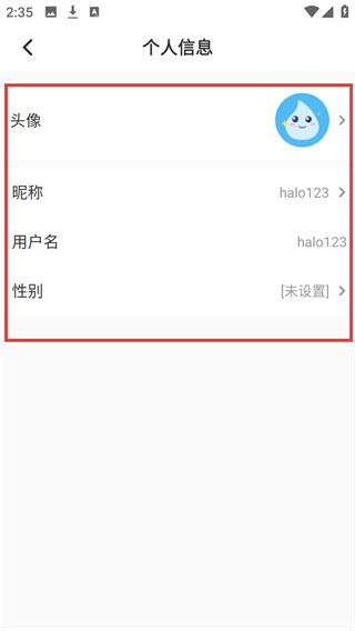 4、进入【个人信息】页面后,可编辑【头像】【昵称】等信息,可点击对应选项进行设置。