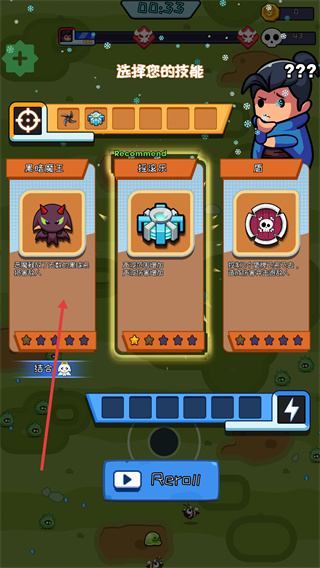 2、选择技能,躲避敌人的攻击,同时寻找攻击时机,提升生存能力。