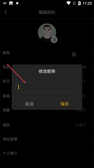 3、点击【昵称】右侧的箭头按钮,弹出【修改昵称】的输入弹窗。