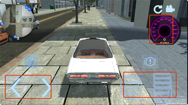 2、确认选择后,点击【PLAY】按钮,进入游戏驾驶界面,开始在城市中操控赛车行驶。
