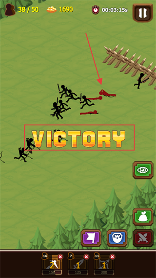 2、用底部按钮购入新火柴人,增加作战人数,指挥战斗火柴人抵御敌人掠夺资源,逐步扩张领地。
