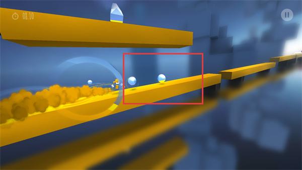 4、在黄色跑道上收集上方【钻石】与跑道上的【白球】道具,同时避开黄色障碍。