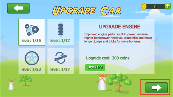 2、初始选择【JEEP】车辆,通过游戏获取金币,增强性能。