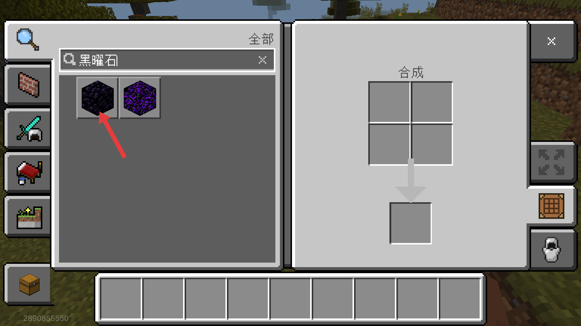 1、先在物品栏搜索并获取【黑曜石】,至少准备14块,这是搭建地狱门的基础材料,可别少拿了哦。
