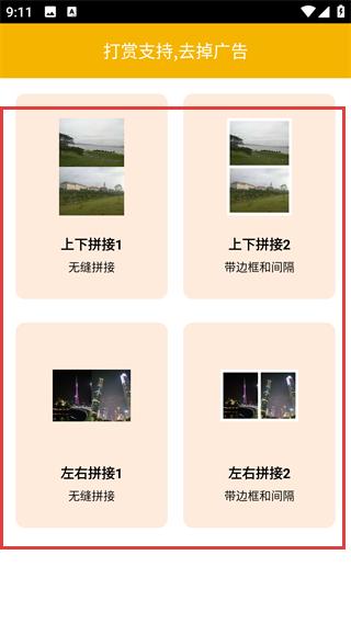1、进入功能页,选择【拼接长图】功能,进入拼接样式选择界面。