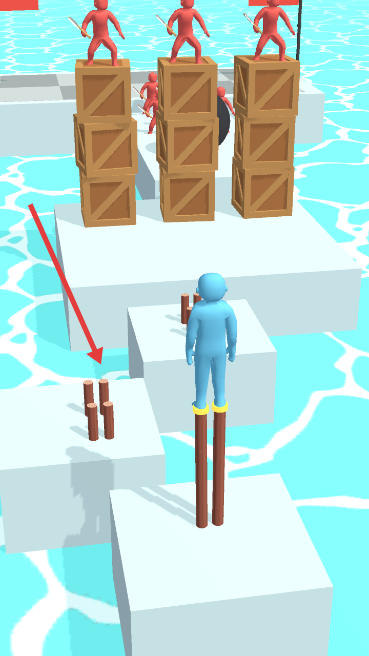 2、利用收集的木棍,搭建长杆,向敌人方向延伸,准备发起攻击。