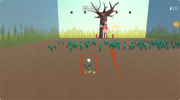 2、游戏中,操控角色在绿色人群中移动,注意躲避危险,跟随人群行动以保证安全。