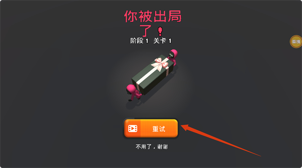 4、若被出局,点击【重试】按钮,重新开始游戏,总结经验,提升游戏技巧以顺利通关。