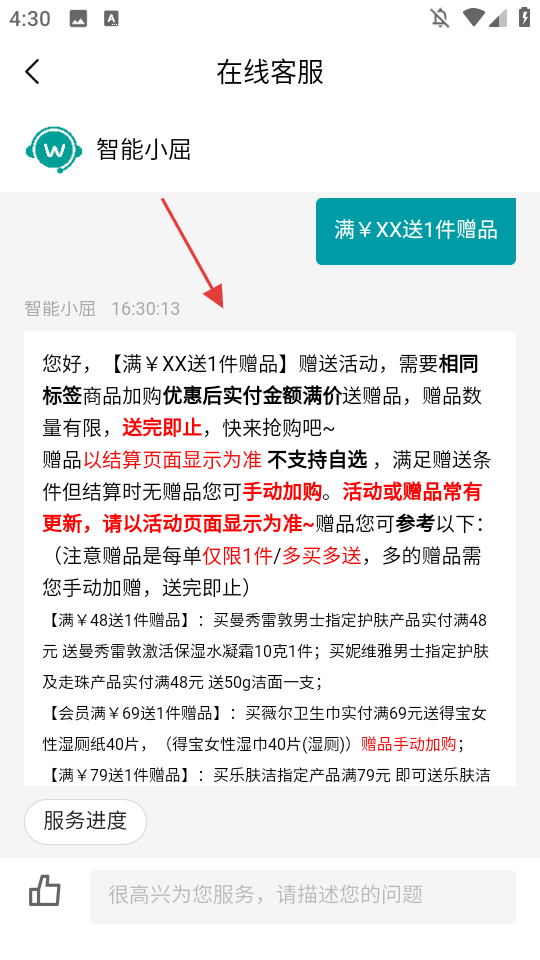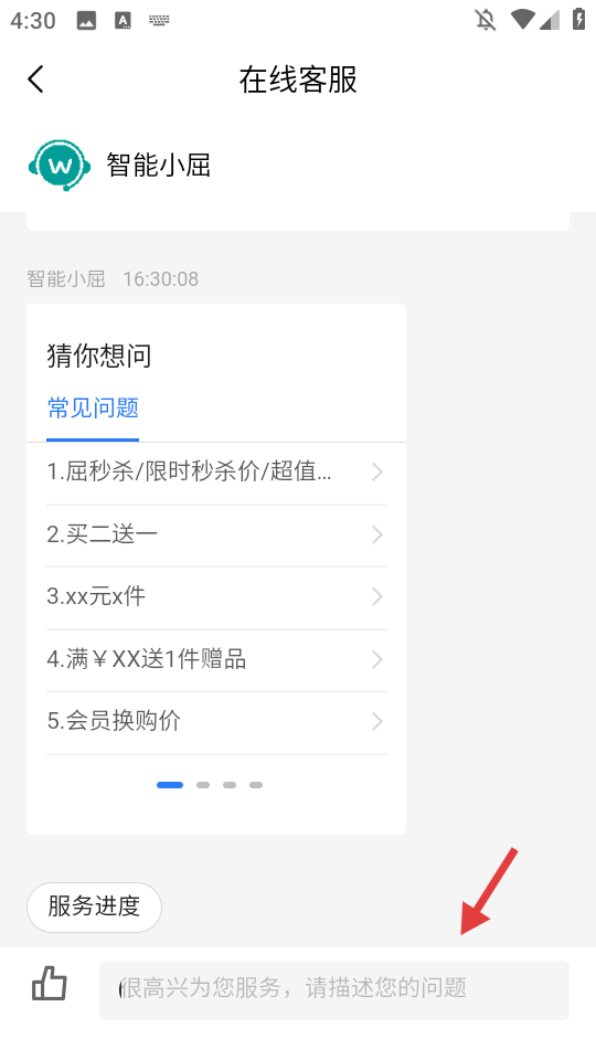 3、在在线客服界面的输入框中,输入想要咨询的问题。