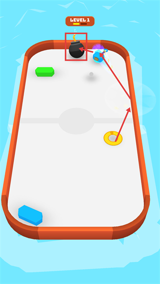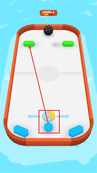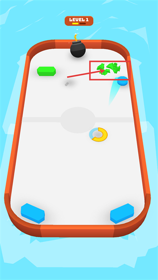 1、在【Level-1】,控制蓝色球瞄准【绿色方块】,调整发射方向,优先发起攻击,开启关卡挑战。