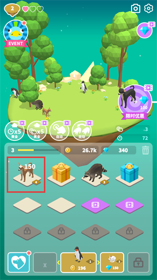 3、查看新合成出的【狗】可获得更多黄金,用钻石购买稀有动物提升效率。