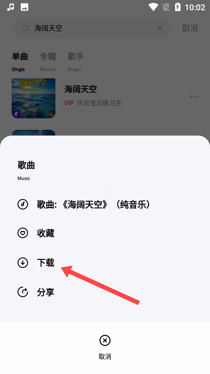 3、在弹出的菜单中,点击【下载】选项进入下载音质选择页面。