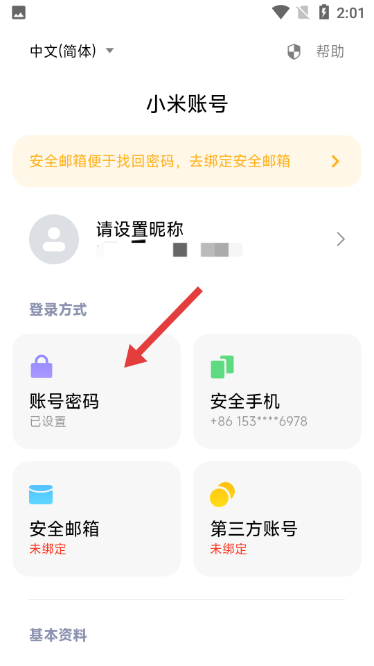 2、点击【账号和安全】,进入账号安全相关操作页面。