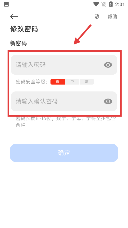 4、输入新密码和确认密码,点击【确定】完成密码修改。