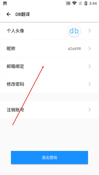 2、进入账号信息页面,选择【邮箱绑定】选项。